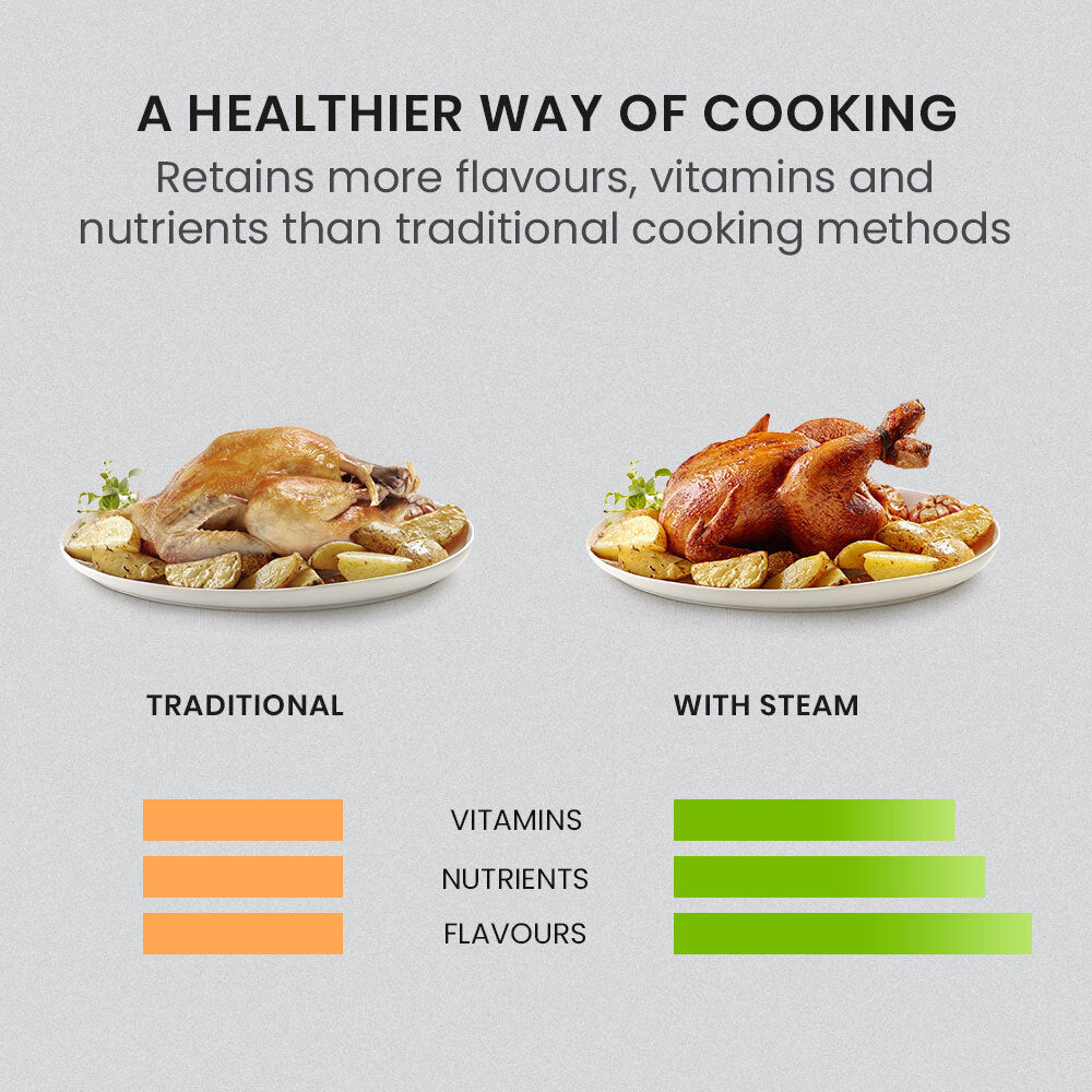 Steaming is a healthier cooking method that preserves valuable vitamins and nutrients in your food, while maintaining moisture and flavour - for healthy, perfectly cooked meals every time.