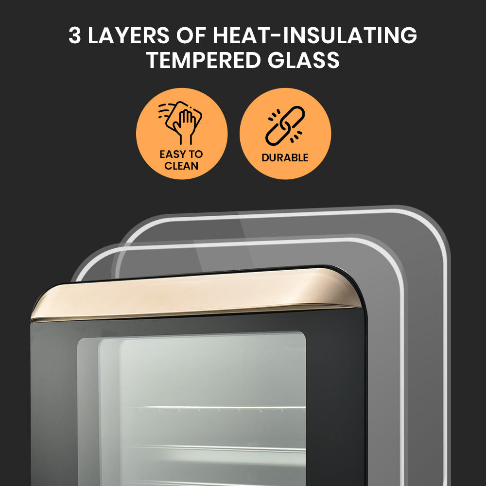 With a large visible window and bright interior light, it is easy to monitor the food and ensure maximum control over the cooking process. Equipped with three layers of heat insulating tempered glass, it’s not only clear and transparent, but also sturdy and safe for long-lasting use.