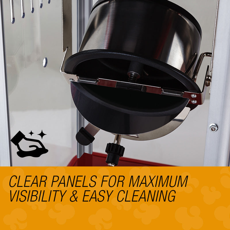 With 310W of heating power, this appliance features an illuminating light that gives a real cinema feel. It has a transparent casing and access hatch so you can see all the popping action as it's happening. Simply place the raw popcorn into the stainless steel kettle and watch fresh, hot popcorn burst out of the flip lids just like at the theatre! Then use the crank handle to load up your bowl - ready for an authentic cinematic experience in your lounge room.