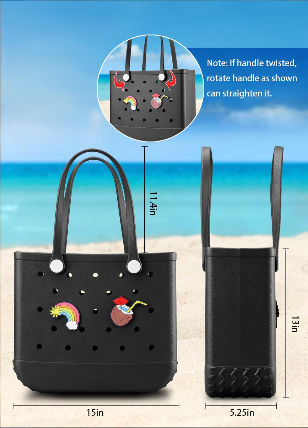 EVA Beach Tote Bag for Swimming, Pool & Travel – Waterproof Washable Rubber Handbag with 2 Random Charms, Lightweight & Sand-Resistant (Black) | Other Colors Available in Store