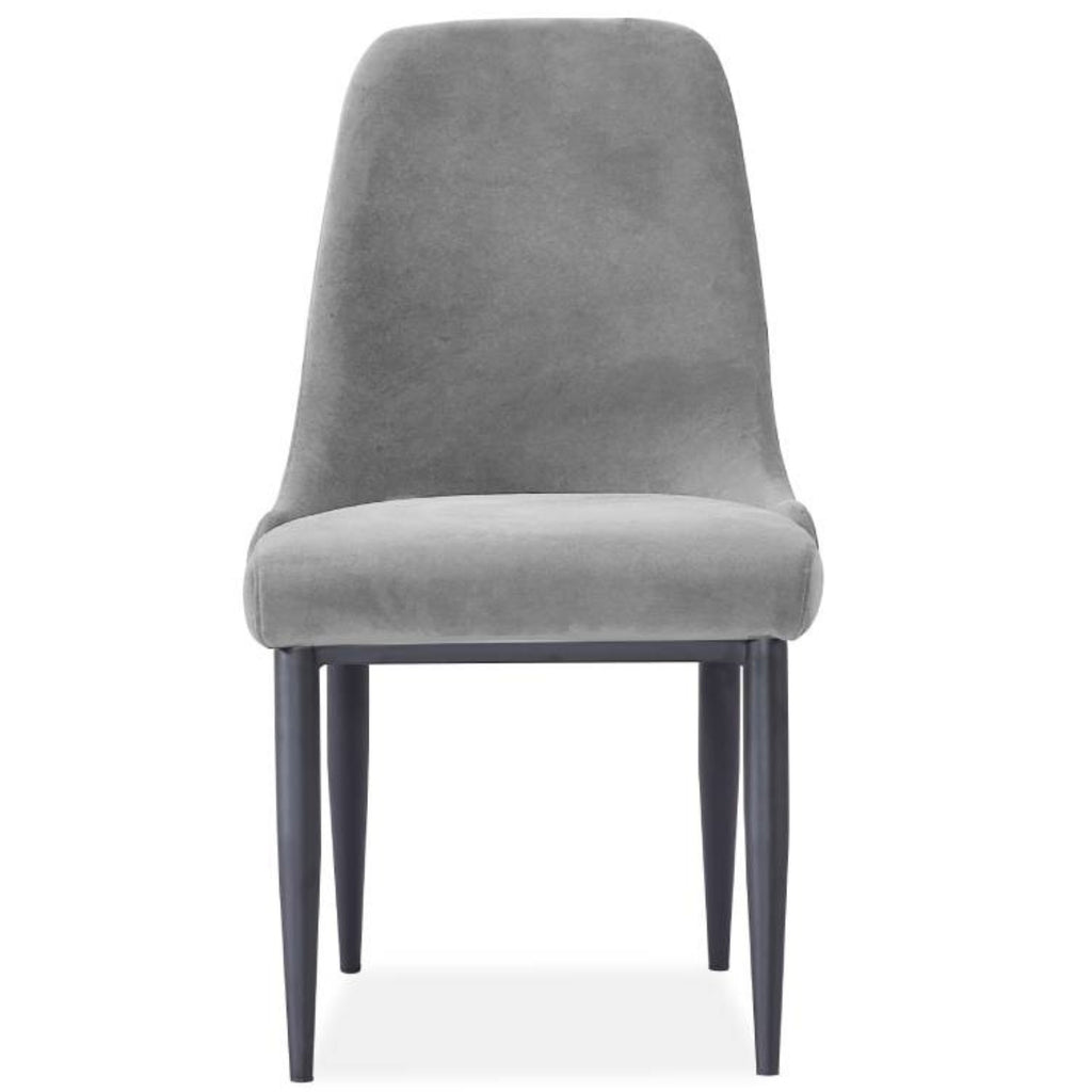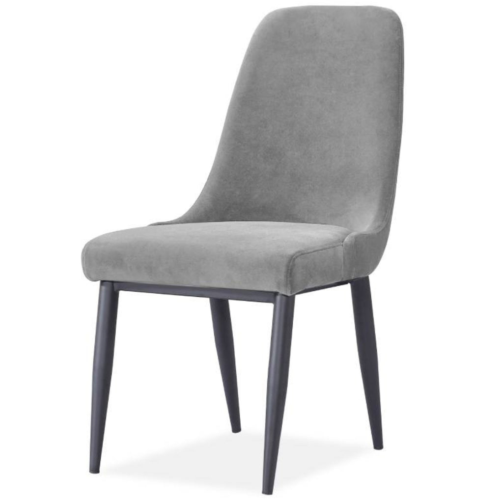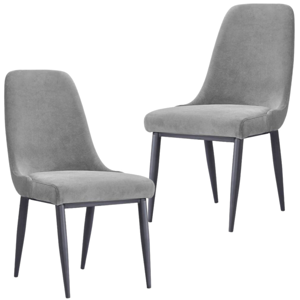 Make your dining area supper comfortable and stylish with these dining chairs. Designed in the Mid-Century style, the chair is upholstered in Roma velvet fabric and has strong, tapered, black legs made of black powder-coated steel. A soft back makes it even more comfortable, giving it a unique look. The chairs look stunning in all decor settings, thanks to their inviting shape and grey-coloured fabric upholstery. A metal frame gives them great strength. A one-year warranty is included with the fully assembled chairs.