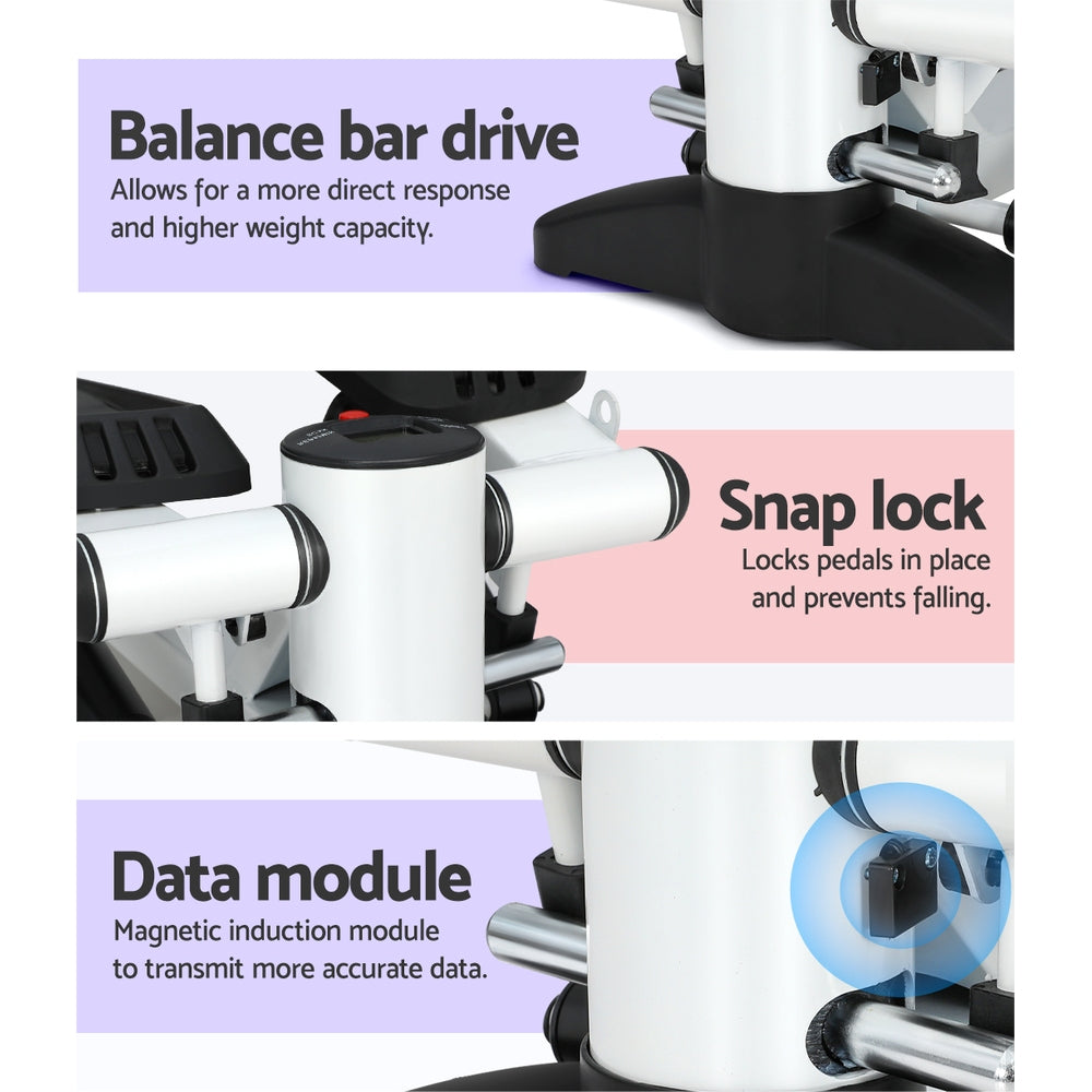 Step up your fitness game with a Mini Stepper from Everfit. Target your thighs, calves, waist and hips without leaving your home. The Mini Stepper is portable thanks to its miniature size, making it perfect for use under your desk, in the living room, or on the go. The stepper has an anti-slip pedal surface and edge for safety and stability, and your package includes a non-slip rubber mat to keep everything in its place. The stepper has a high weight capacity of 150kg and operates quietly for a pleasant exercise session that won’t disturb your guests or family. The LCD screen will show you all your fitness data as you exercise, and the detachable soft pedal pad is easy on your feet and easy to maintain. It requires no assembly and folds neatly away when not in use. Best of all, the stepper comes with two bonus resistance ropes so you can perform a variety of exercises. Get fit today from the comfort of your home or office with the versatile Everfit Mini Stepper.
