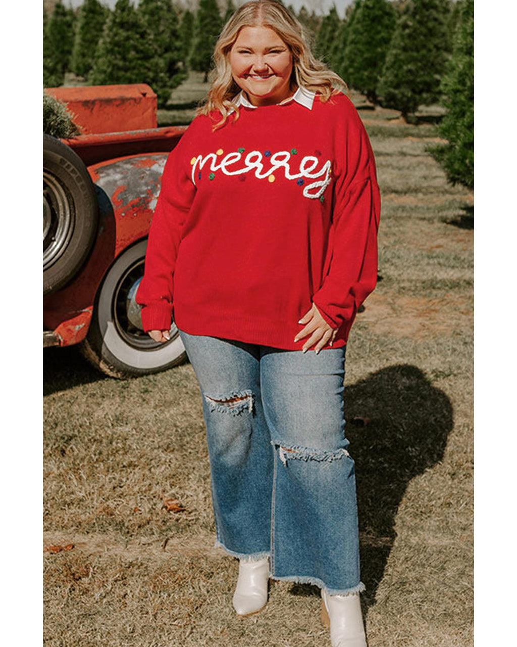 Fiery Red Merry Graphic Christmas Plus Size Sweater - 2X