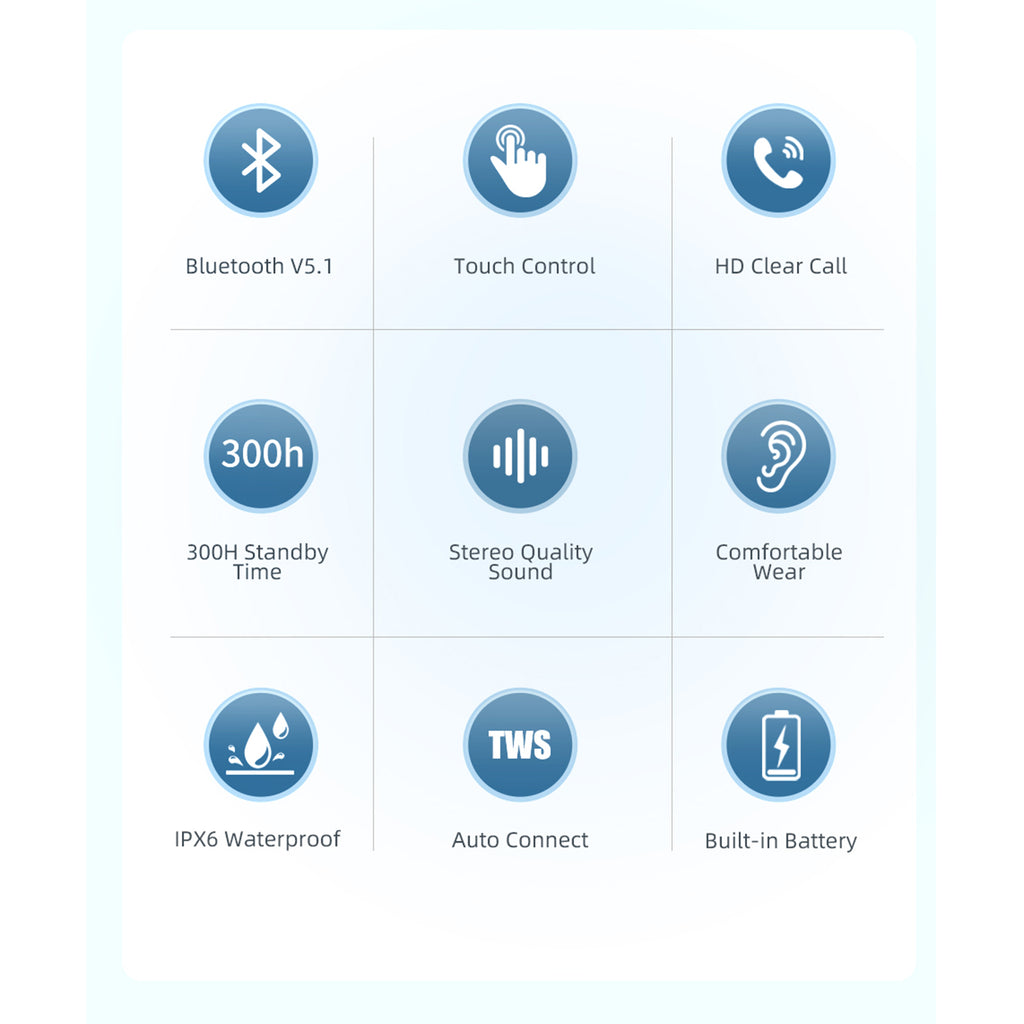 Each in-ear connects immediately and independently, so you can take calls with either one and assign unique functions to left and right. With 8 hours of playtime, 300 hours standby time and IPX6 waterproof rating, they\'re the ultimate true wireless in-ear touch control headphones.