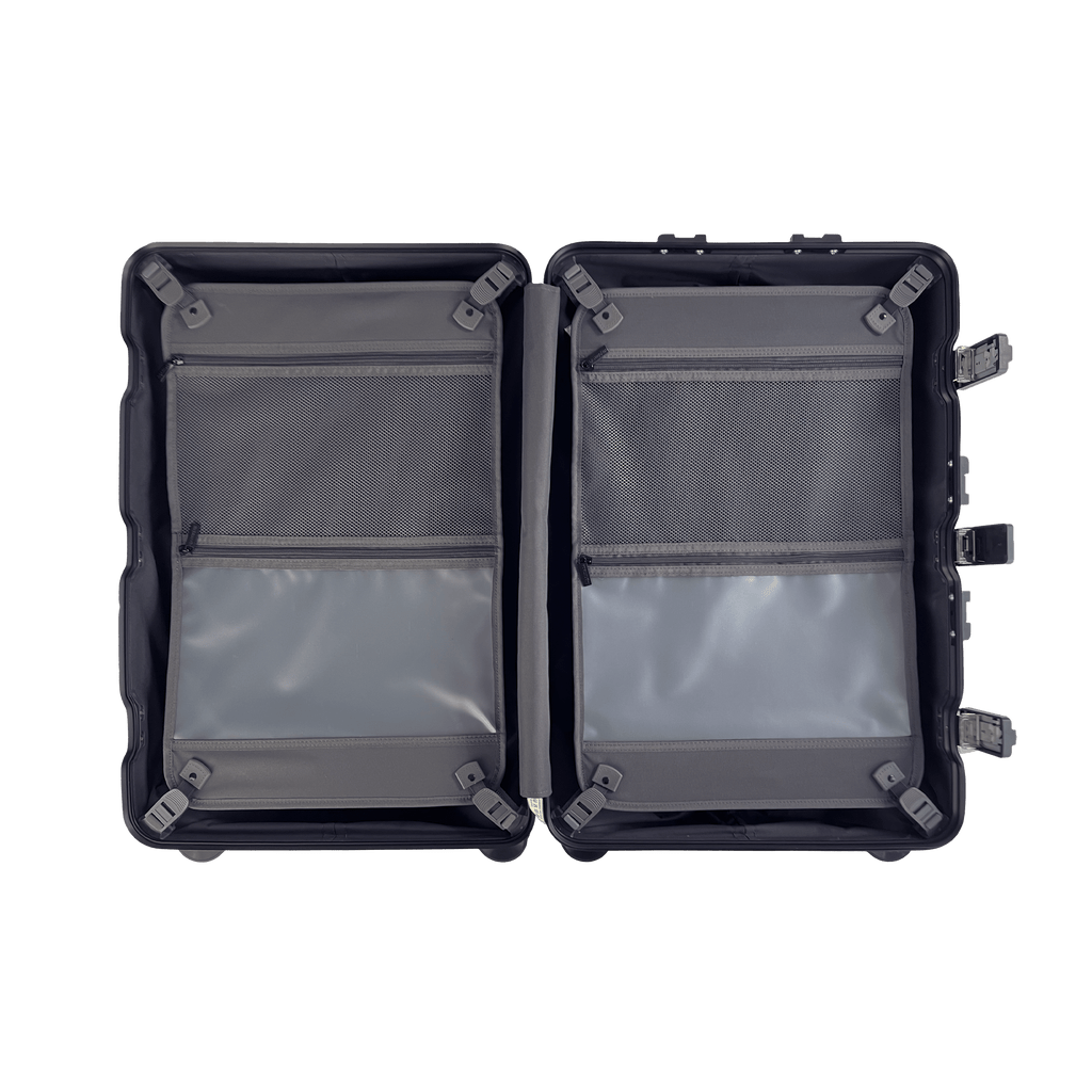 Our Flightmode Travel Suitcase Medium is the perfect companion for your next 7-10 day trip. With its luxury anodised aluminium finish, reinforced wheel structures and double TSA approved latch locks, this suitcase is a dream to travel with. Showcasing our iconic 360 double wheels and inner divider pads secured by a zipper, it's big enough to pack everything you'll need - including your laptop, books and work materials - yet still lightweight!