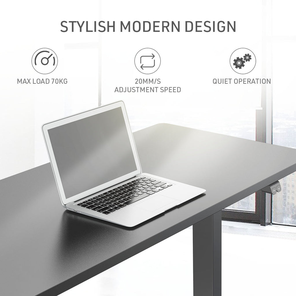 With the touch of a button you can adjust the height smoothly and quietly from 72cm all the way to 118cm. The motor is rated to lift up to 70kg which easily caters for any typical requirements.