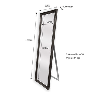 French Provincial Ornate Mirror - Black - Free Standing 50cm x 170cm