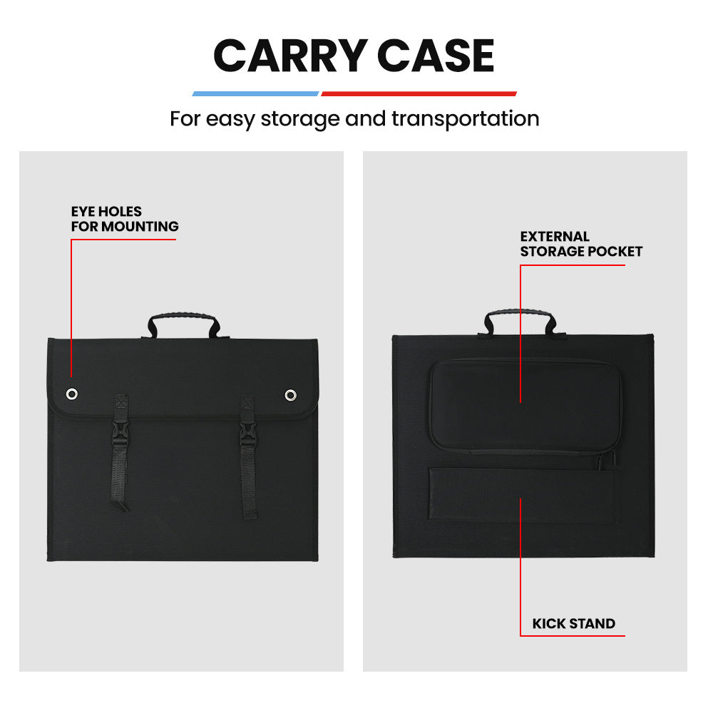 The included carry case features an ergonomic rubber handle and it all weighs in at only 5kgs. Dual metal reinforced grommets allow you to easily hang the panels on your tent, backpack or 4WD for easy, clean, no hassle power for your next camping or hiking adventure. The panels pack down flat for easy,compact storage at the end of the day.