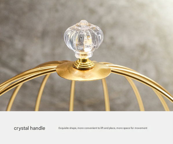 • Elegant Birdcage Design: Features a beautiful and open birdcage silhouette with a luxurious gold-tone finish, topped with a delicate crystal-style knob for an extra touch of glamour.