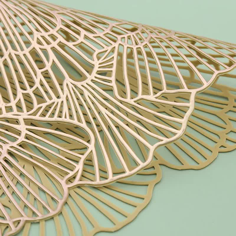 Gold Elegant Floral PVC Placemats - Set of 8, Durable & Stylish Table Mats (38cm)
