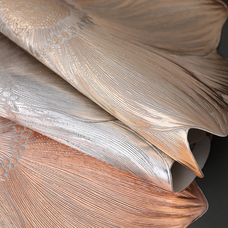 Enhance your dining table with these stylish and functional PVC Gold Foil Bottom Heat-Resistant Table Mats. Perfect for western cuisine, these elegant placemats feature a gold foil finish and are designed to resist heat, water, and slipping, ensuring a safe and beautiful dining experience. Ideal for both casual and formal settings, this set of 8 placemats will complement any table setting while keeping your table protected.