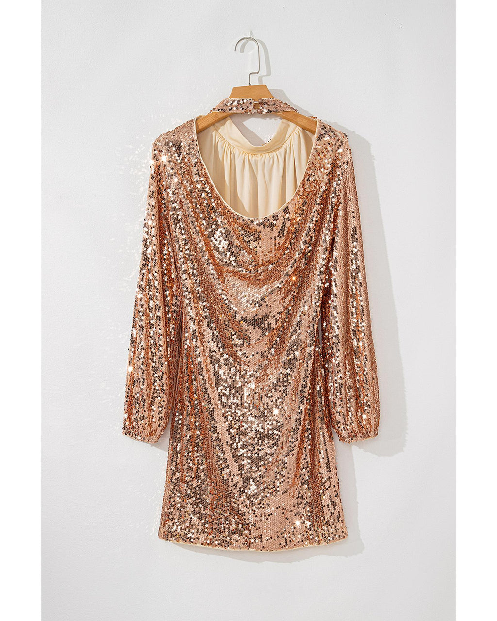 Gold Sequined Long Sleeve Cutout Back Mini Dress - S