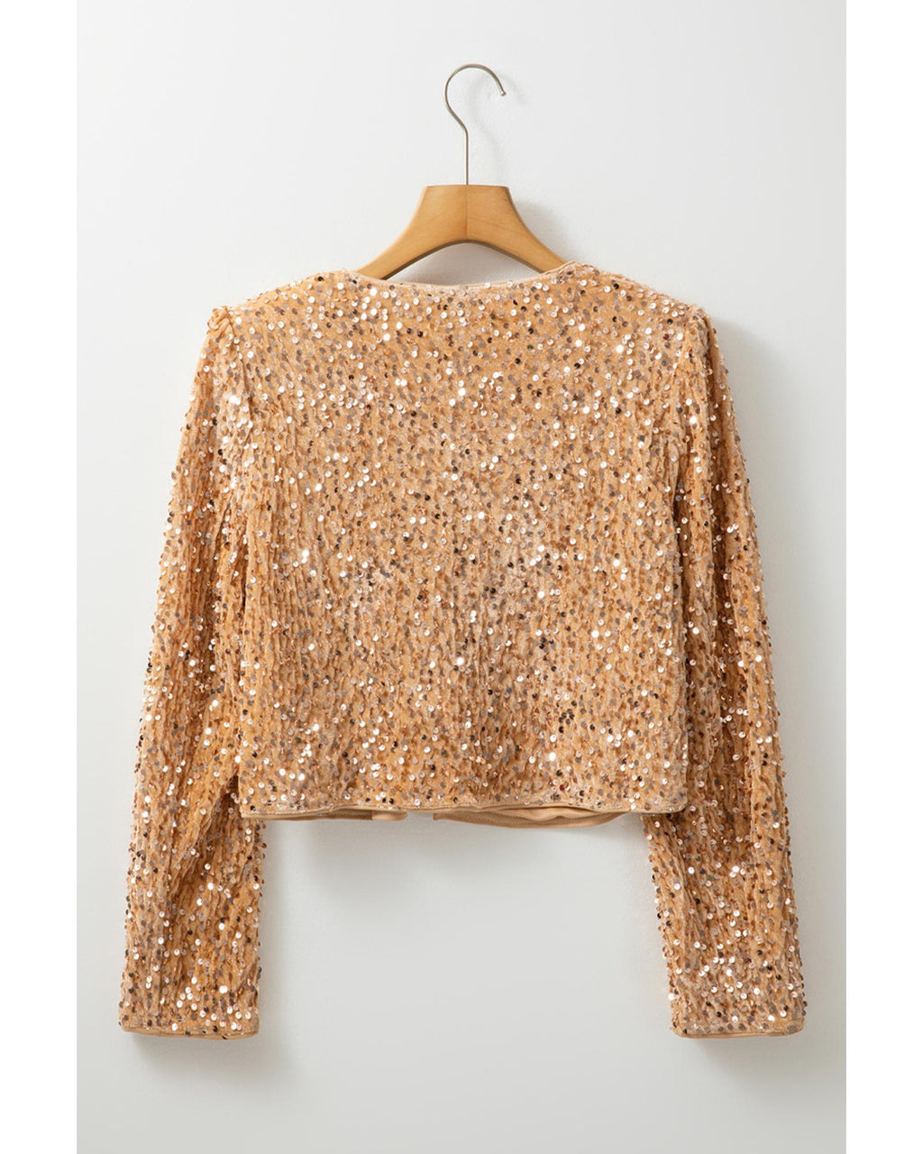 Golden Fleece Sequined Open Front Cropped Jacket - XL