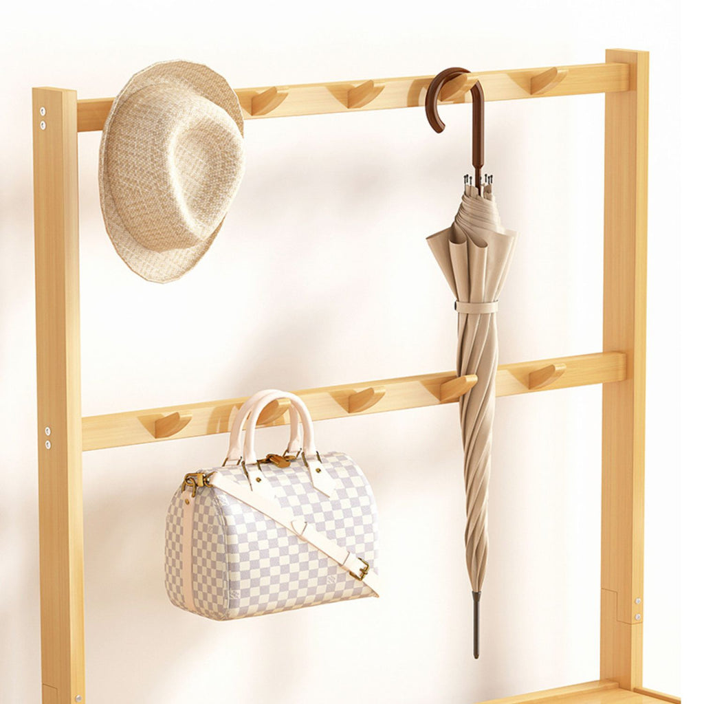 Top shelf came with 2 tiers hanging rack, can hang either you cloth, bags and hat