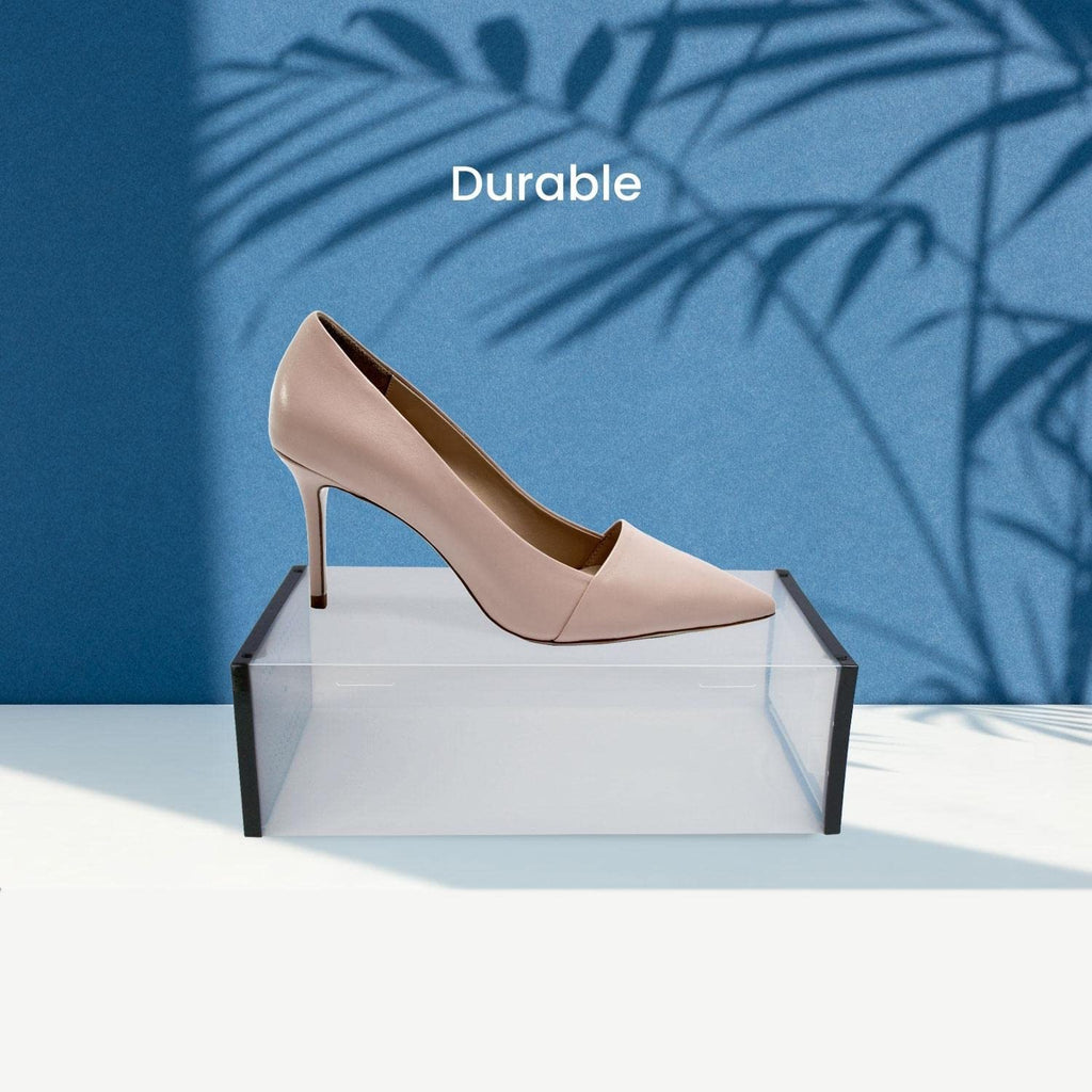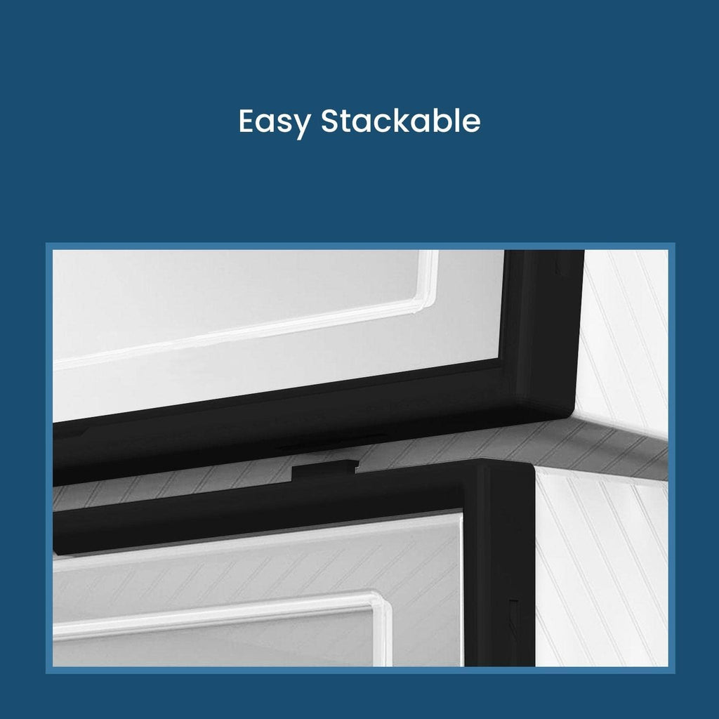 Our clear storage bins are designed with clear door, not only allow your shoes to be displayed in their glory, but also ensure you to easily identify and find the shoe you are looking for. A must-have shoe rack for closet, wardrobe, entry way and under bed.