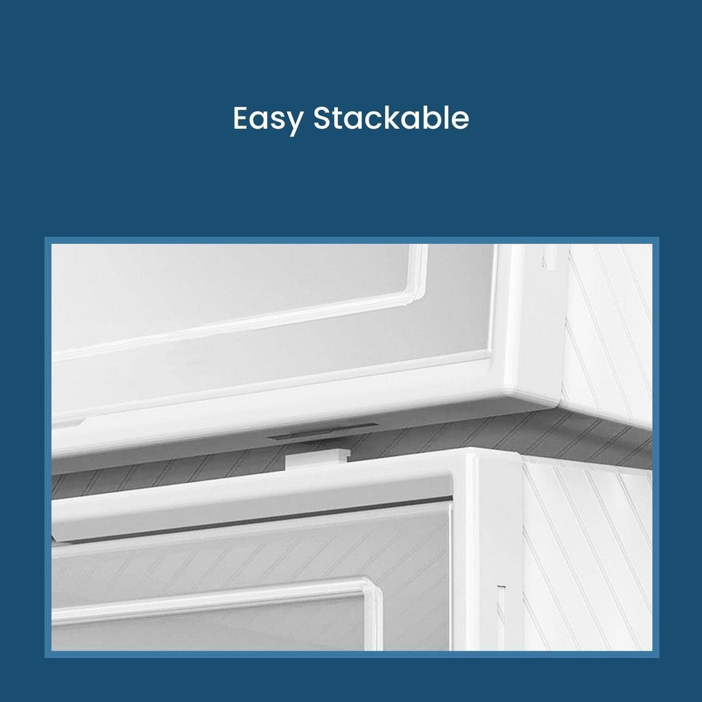 Stackable design with interlocking system: The excellent way to keep your footwear neat, tidy and organized. This shoe organizer bin is made of durable plastic and is designed to be stackable, so you can use it individually or together with other organizer bins to create a custom shoe storage cabinet. Simply disassemble the organizer for easy storage without taking up space when not in use. Ventilation holes on the cover facilitate air circulation to dissipate odors.