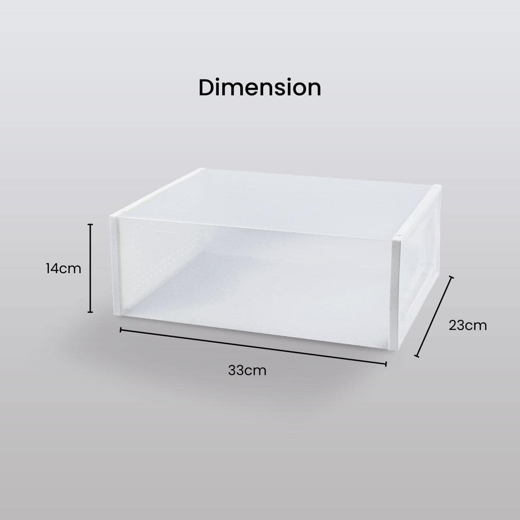 Drop-front opening ensures easy access: The Plastic Shoe Organizer is a great way to keep your shoes organized and easy to find. The organizer has a see-through window on the front so you can see what's inside without having to open it. The transparent plastic also makes it easy to find the pair of shoes you're looking for. The shoe organizer is made of durable plastic and has a non-skid base to keep it in place. It can be folded flat for easy storage when not in use.