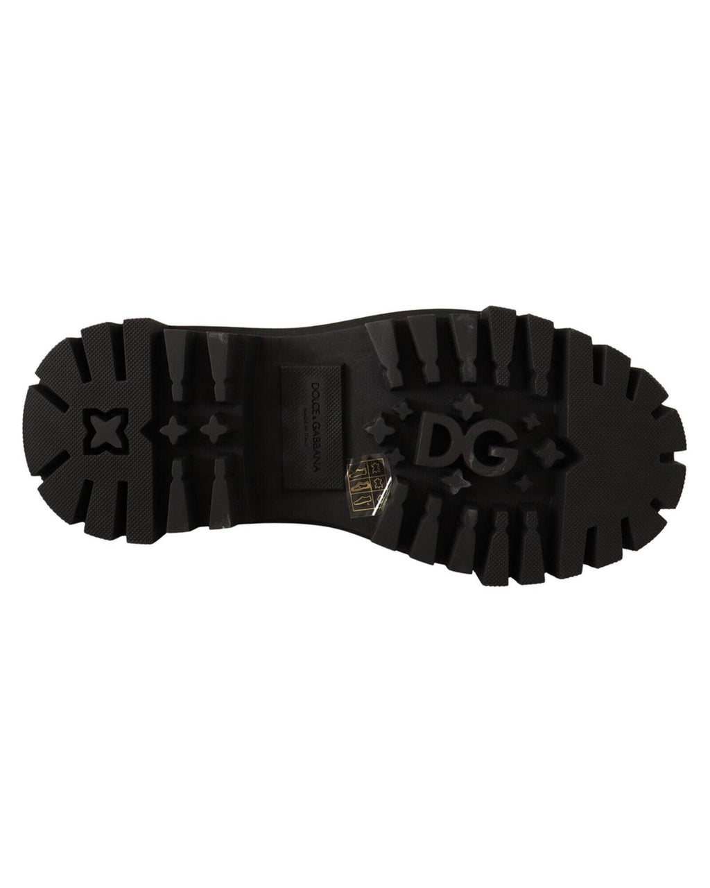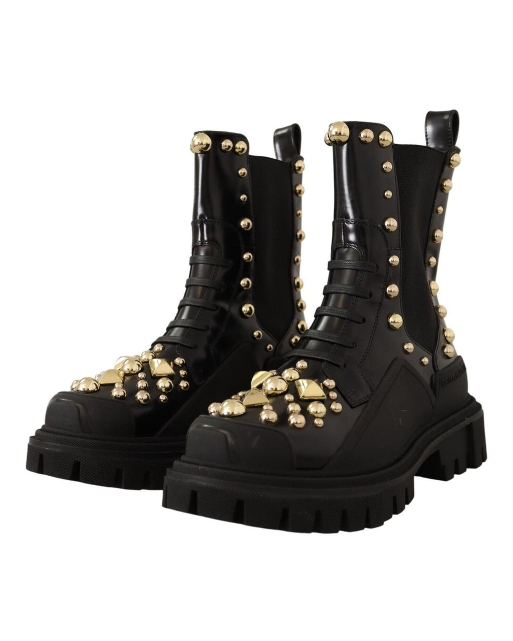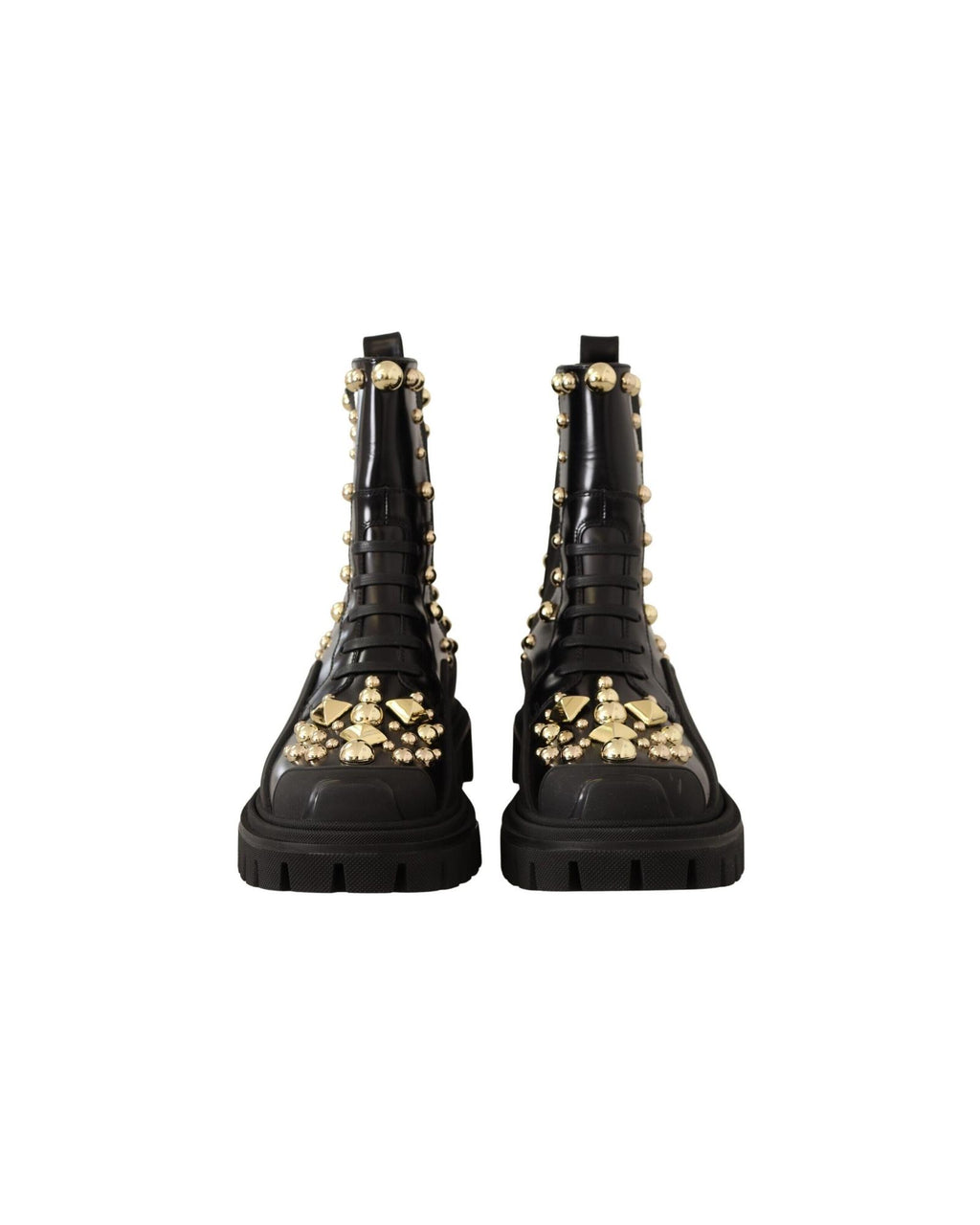 - 100% Authentic Dolce & Gabbana Women polished calfskin combat boots with studs and embroidery