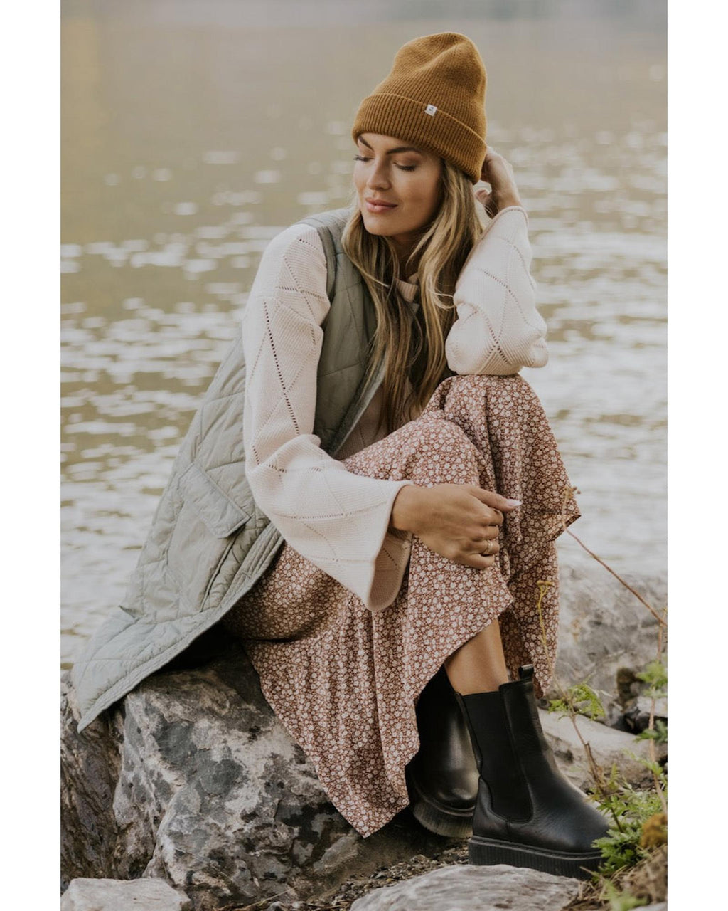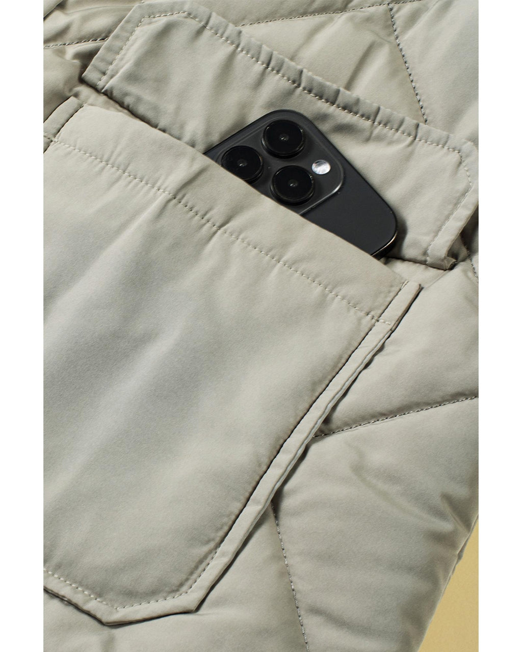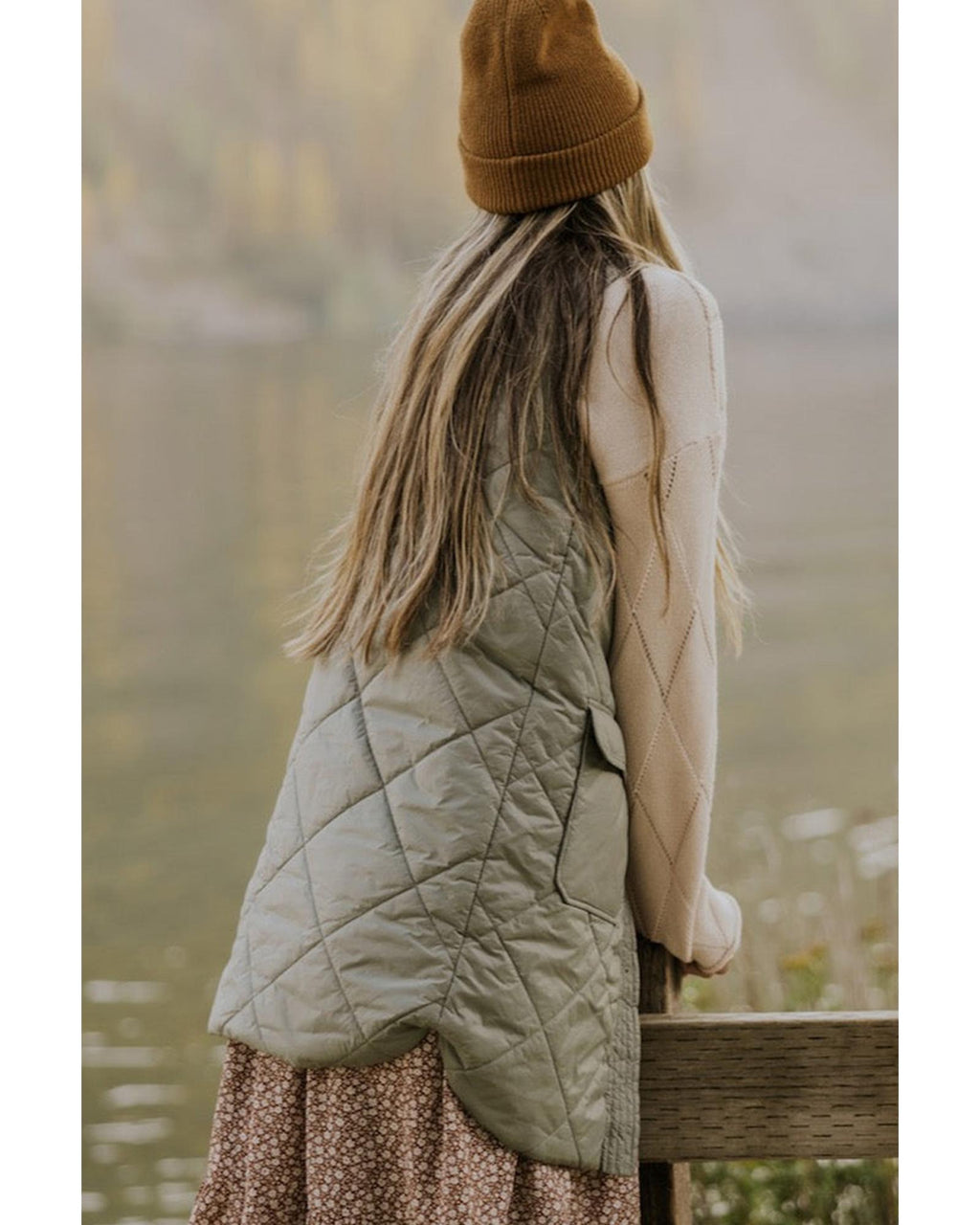 Grass Green Quilted Long Vest Jacket with Pockets - S