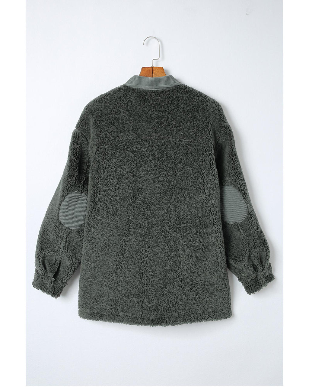 Gray Corduroy Trim Elbow Patch Sherpa Jacket - XL