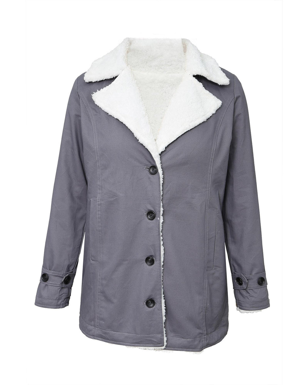 Gray Lapel Collar Button Fleece Jacket - M
