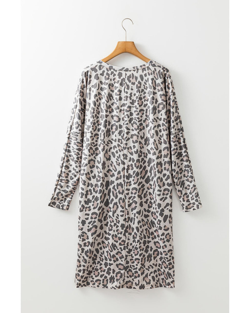 Gray Leopard Print V Neck Loose Fit Mini Dress - L