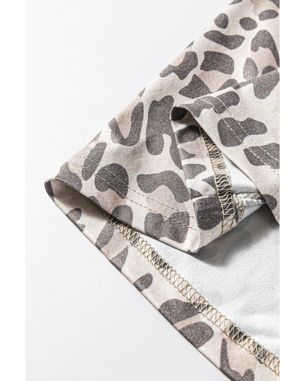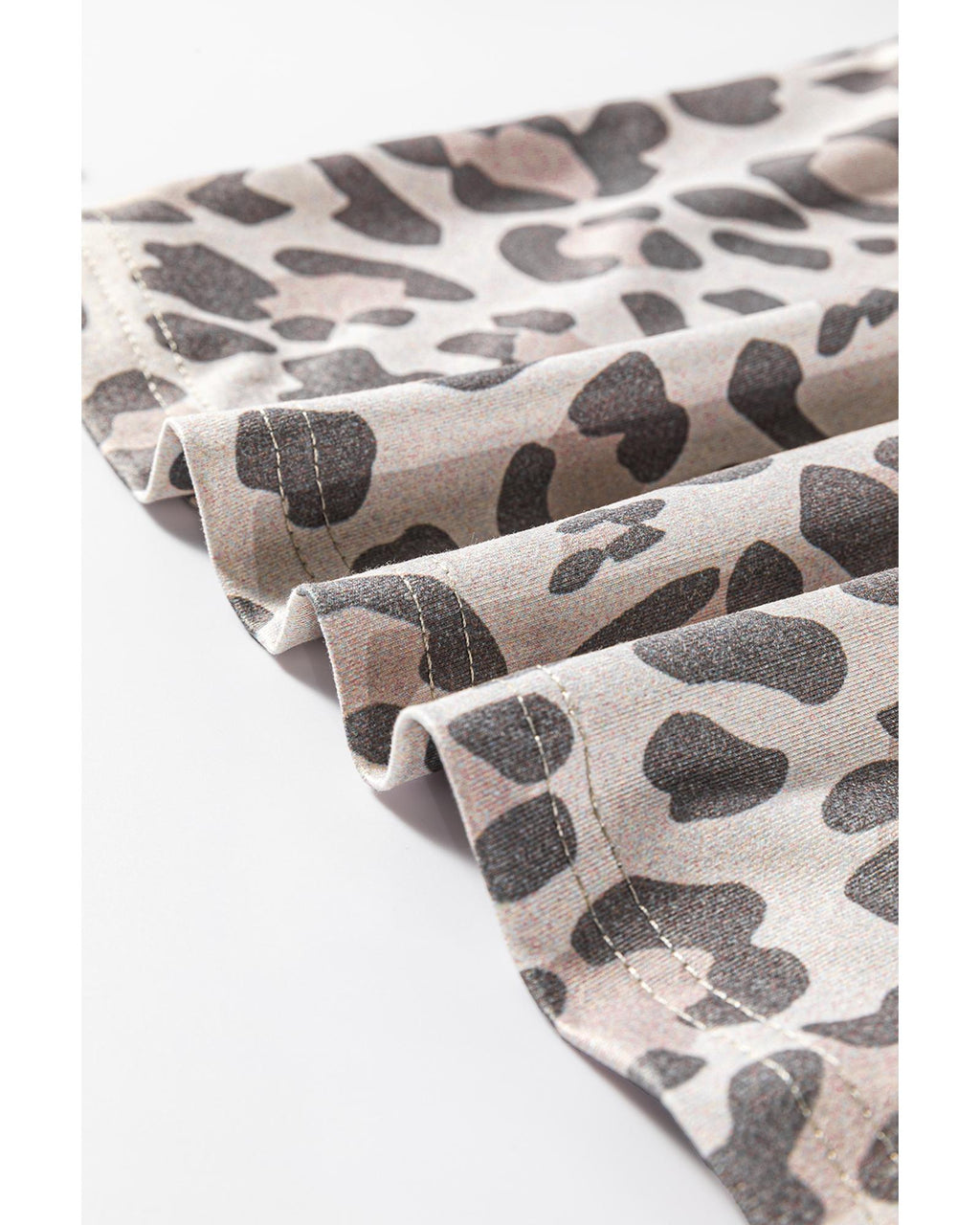 Gray Leopard Print V Neck Loose Fit Mini Dress - M