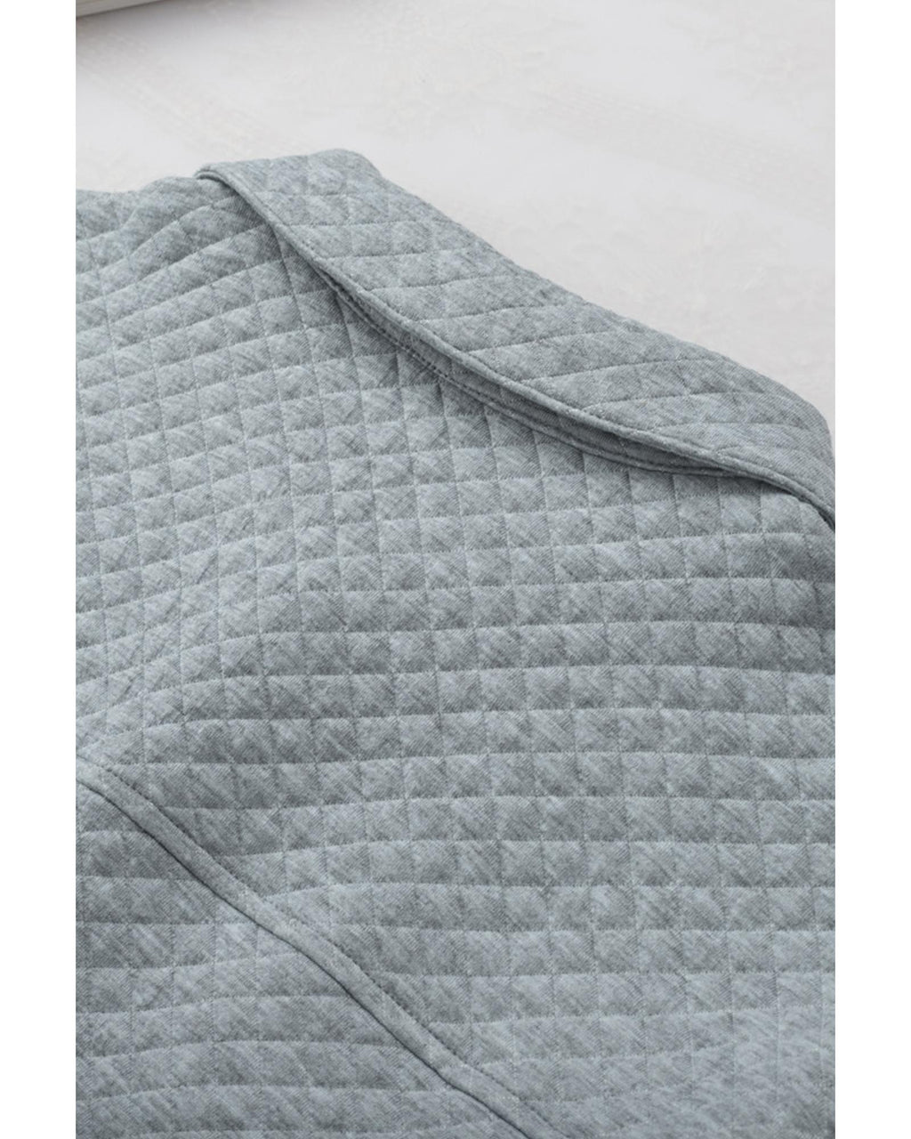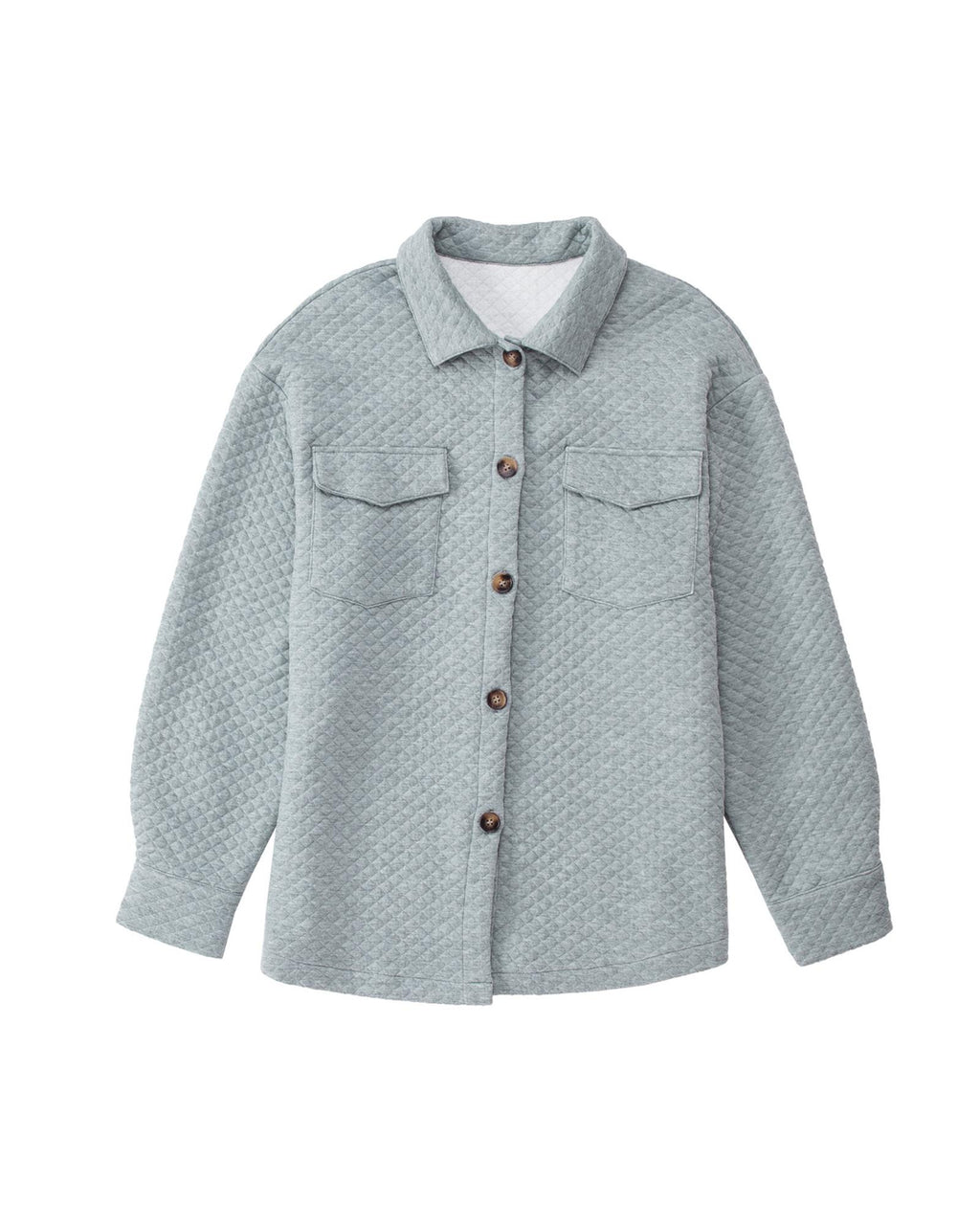 • Gray Retro Quilted Flap Pocket Button Shacket
