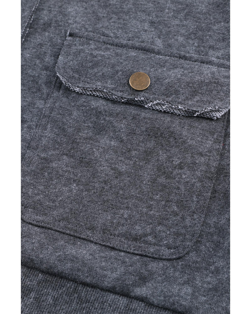 Gray Vintage Washed Flap Pocket Button Shacket - L