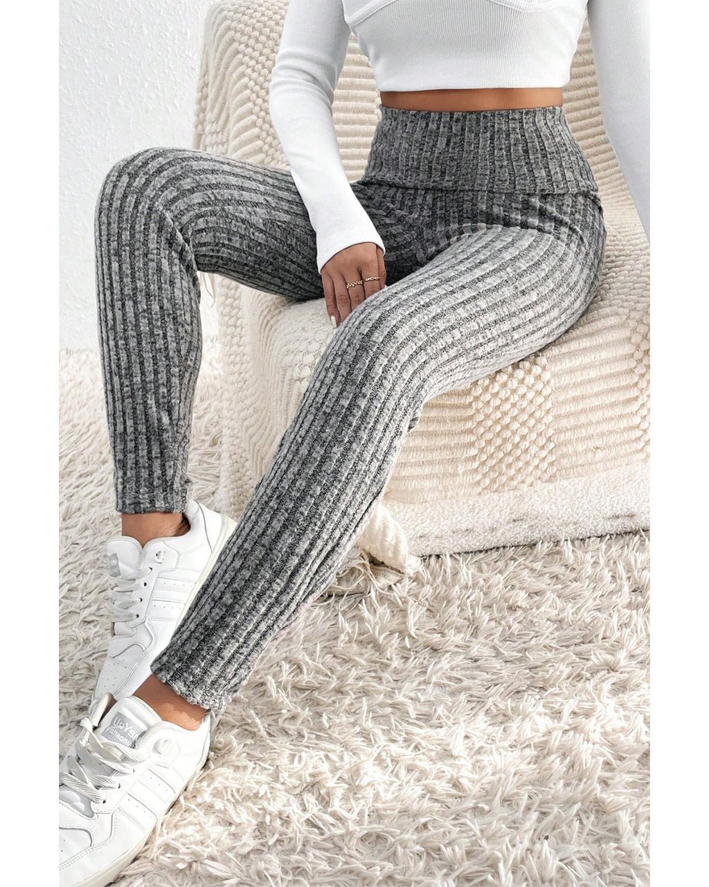 Gray Wide Waistband Ribbed Textured Knit Leggings - S