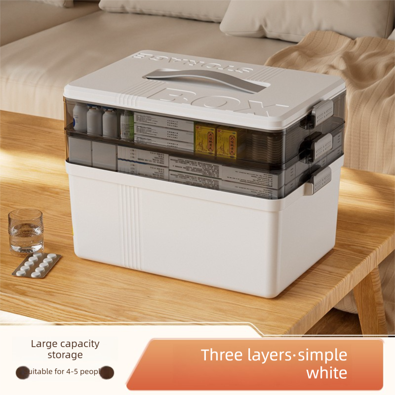 - Smart 3-Layer Partitioning: The box is divided into three distinct levels: a top tray for emergency items and small tools, a middle layer for frequently used medications, and a deep bottom compartment for large bottles and spare stock.