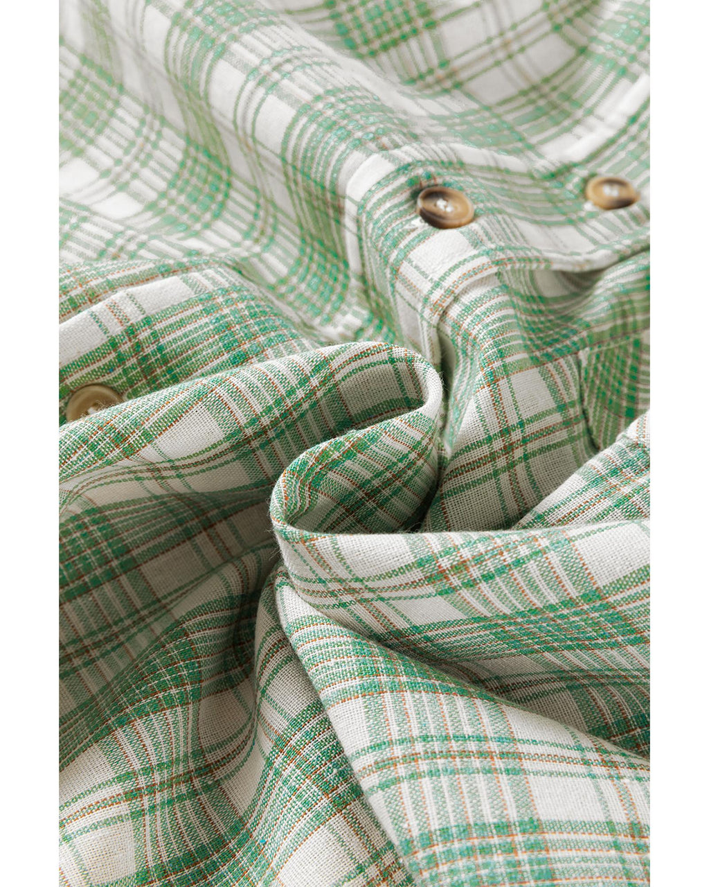 Green Checkered Print Loose Fit Buttoned Hooded Shacket - M