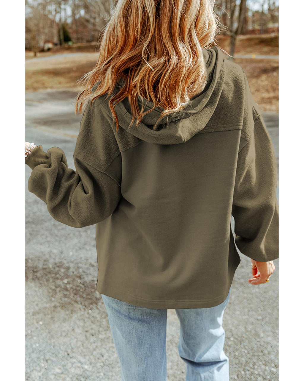 Green Flap Pocket Drawstring Hood Zip Up Jacket - M