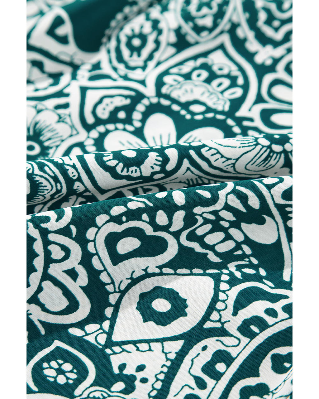 • Green Floral Flounce Sleeve Split Neck Plus Size Dress