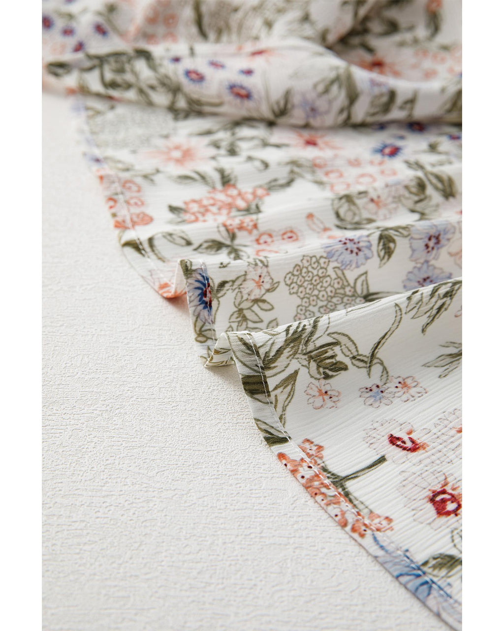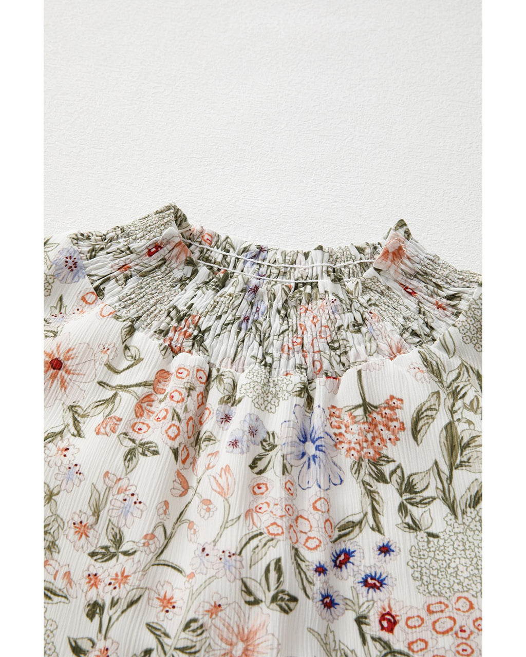 Green Floral Print Tiered Frilled Shirred Mock Neck Mini Dress - S