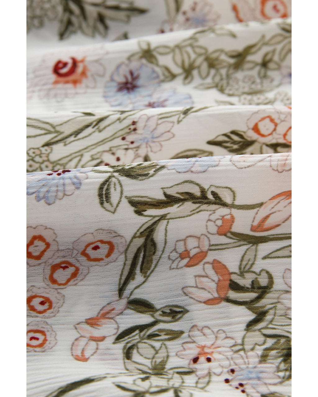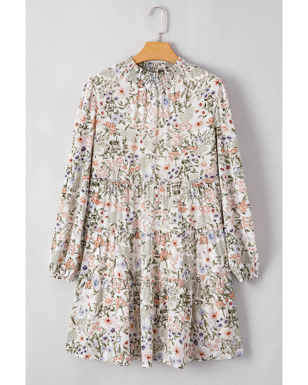 Green Floral Print Tiered Frilled Shirred Mock Neck Mini Dress - XL