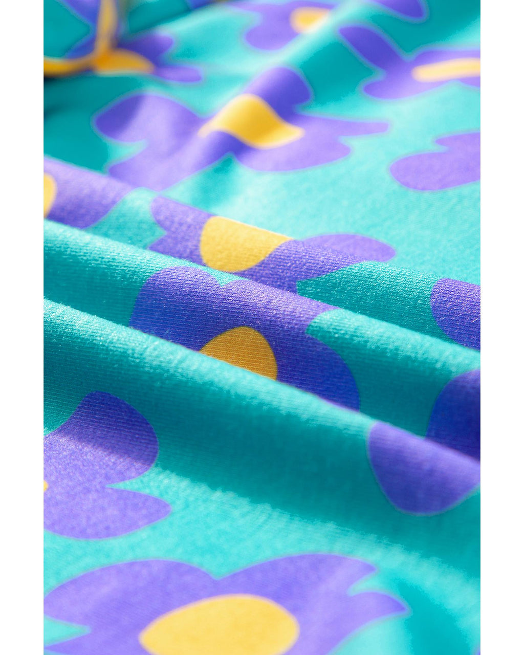 Green Flower Print Short Sleeve Shirt Pajamas Set - M