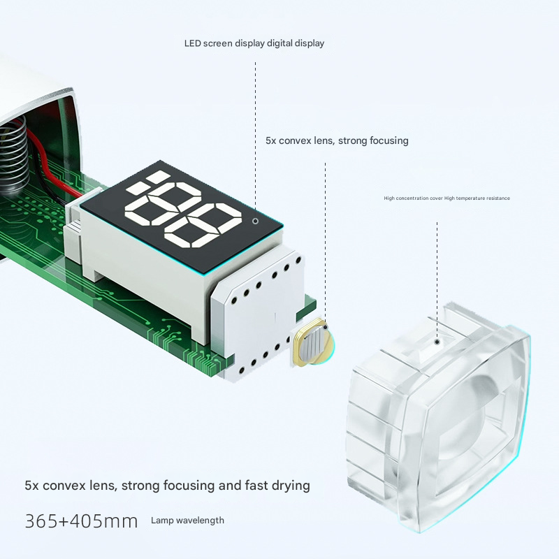 • Powerful Focused Beam: Equipped with a 5x convex lens that concentrates the light for a strong, rapid cure, ensuring decorations and nail extensions are securely bonded.