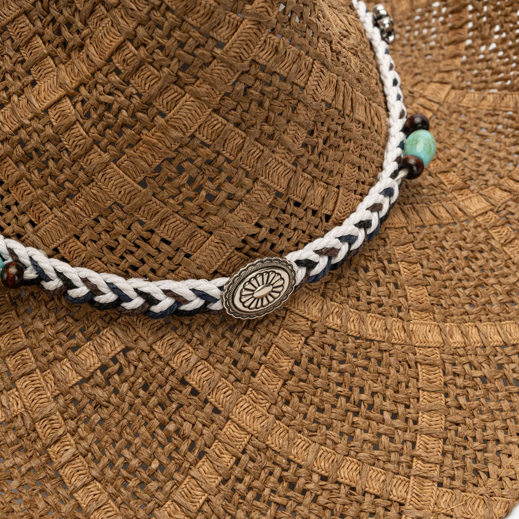 Stay cool and protected from the sun in style with this handmade straw cowboy hat. Perfect for summer days, outdoor adventures, or adding a touch of Western flair to your look. This hat is carefully woven from natural straw and features a decorative leatherette band with studs.