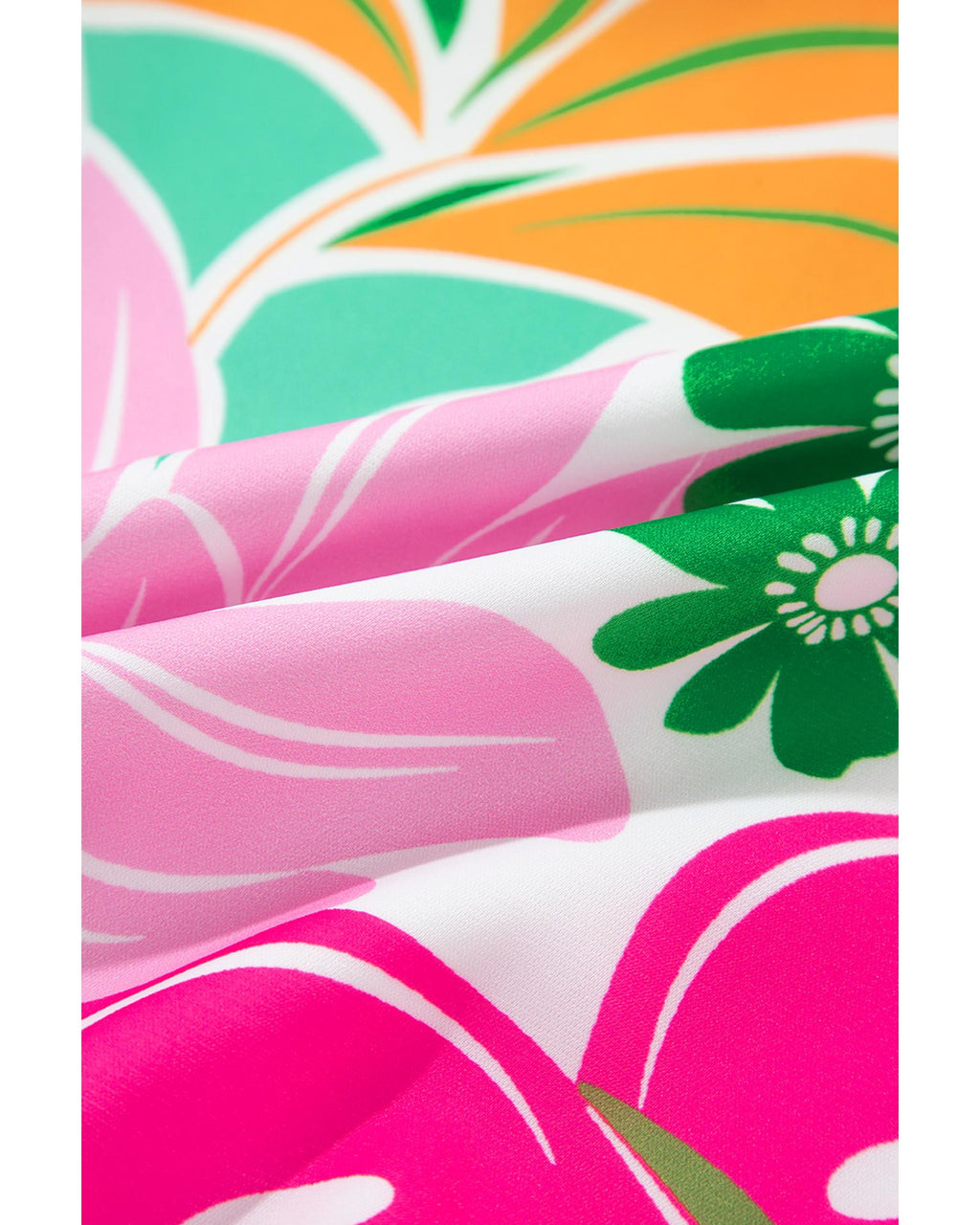 Green Multicolor Botanical Bubble Sleeve Mini Dress - L