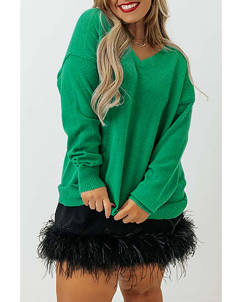 Green Plus Size Drop Shoulder V Neck Sweater - 2X