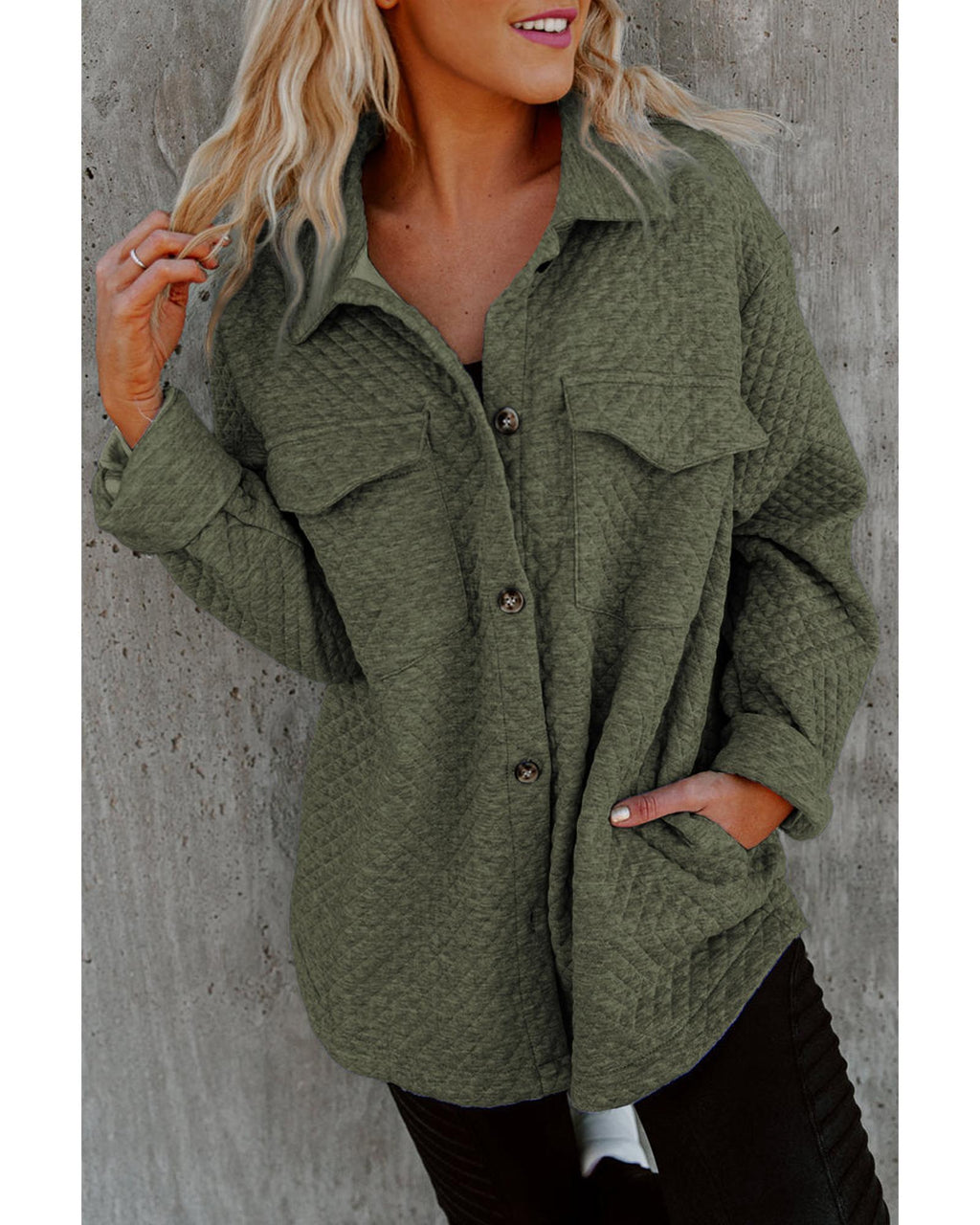 Green Retro Quilted Flap Pocket Button Shacket - L