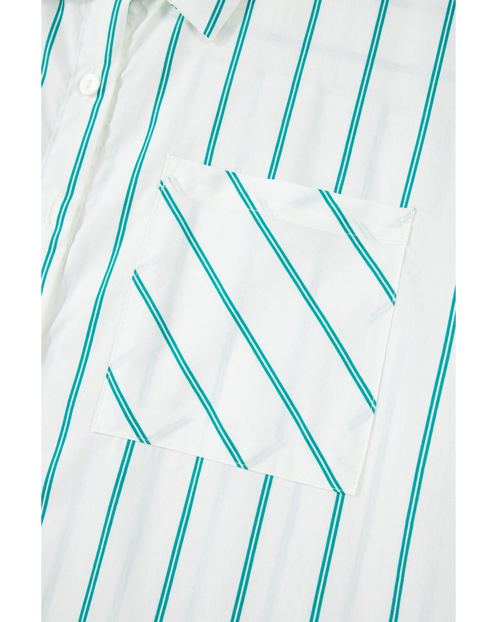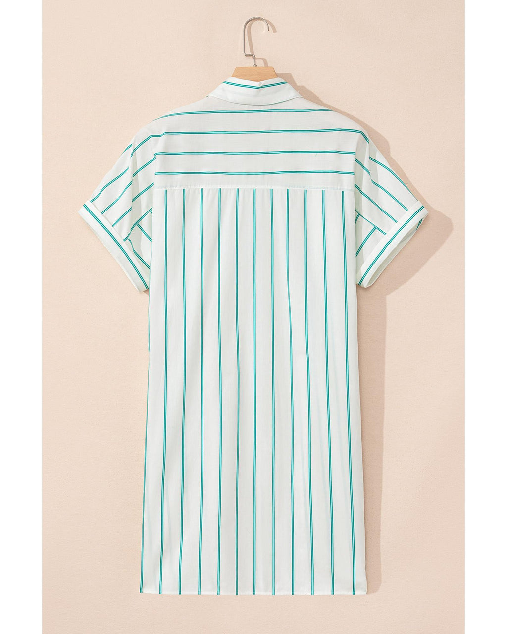 • Green Stripe Plus Size St Patricks Day Short Sleeve Buttoned Shirt Dress