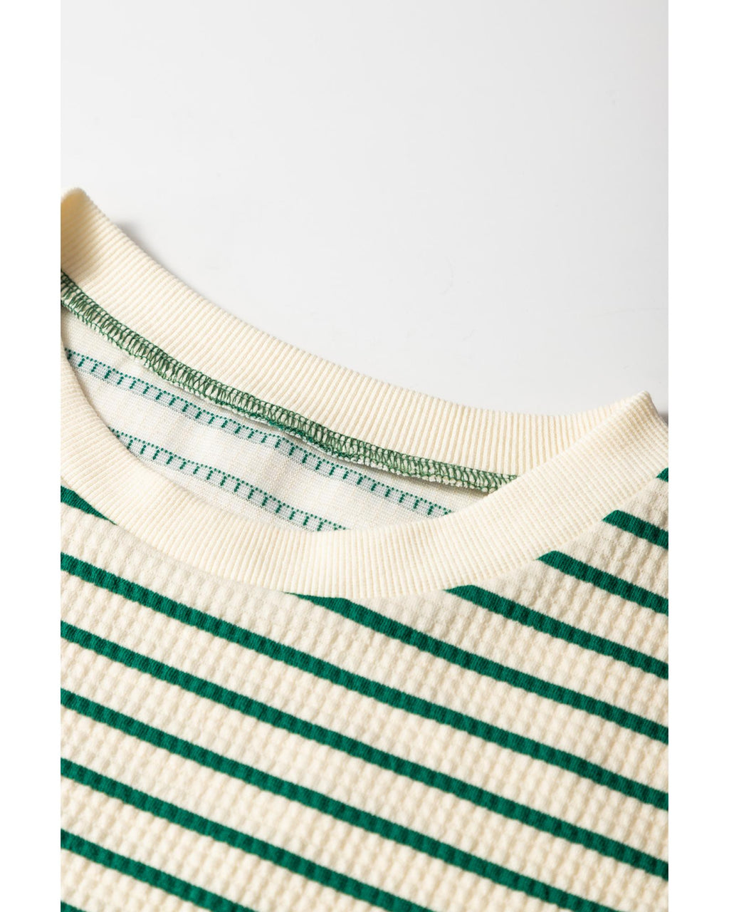 Green Stripe Woven Ruffled Sleeveless Mini Dress - M