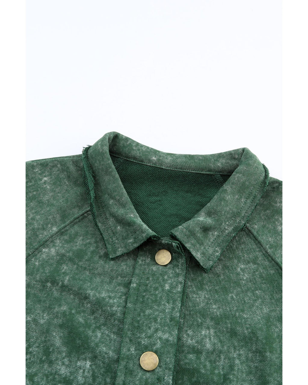 Green Vintage Washed Flap Pocket Button Shacket - S