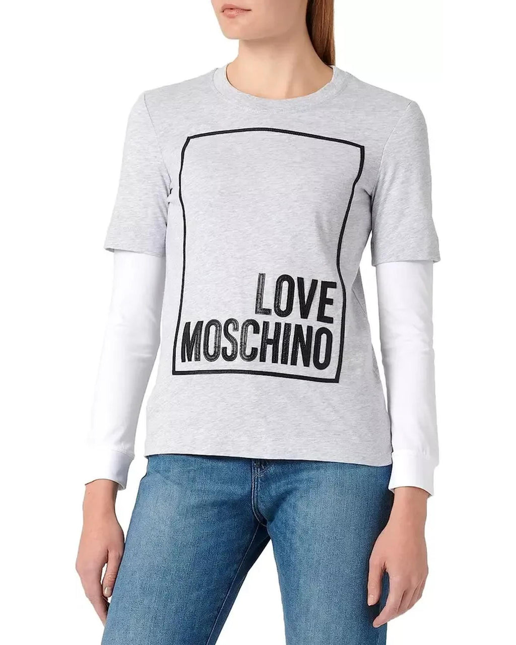 Grey Melange Long-Sleeved Cotton T-Shirt with Eco-Leather Logo M Women