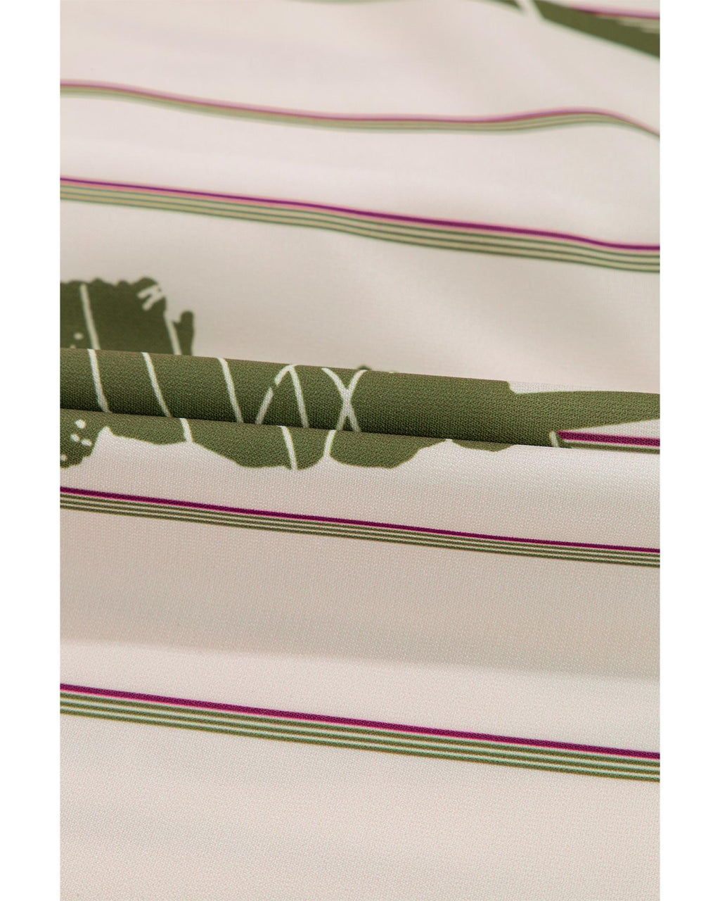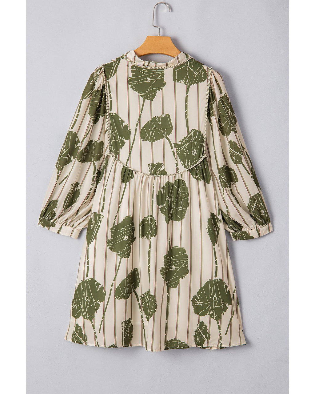 Guacamole Green Floral Striped Print Contrast Piping Puff Sleeve Dress - XL