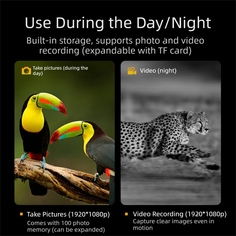 • High Resolution Lens and Capture: 200W High-pixel sensor technology allows for crisp photo and video recording, ensuring every detail of the wildlife or scenery is preserved in high definition.