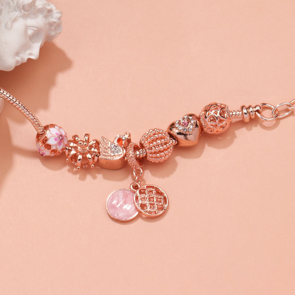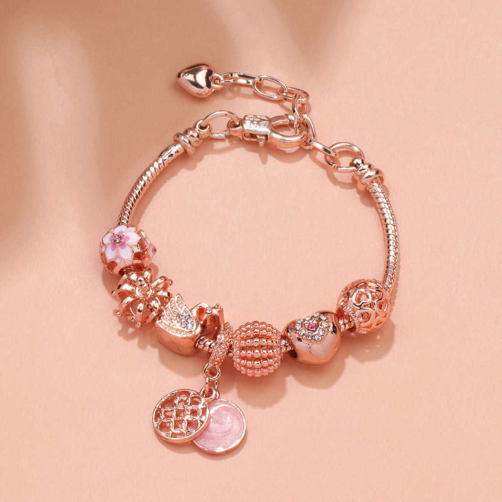 Hollow Crystal-Encrusted Swan Crown Flower Heart Bracelet(rose gold,17cm)
