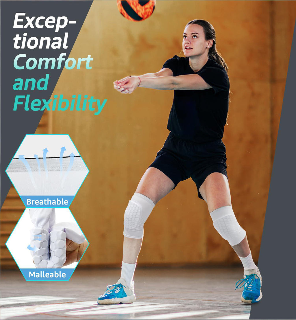 Honeycomb Knee Pads for Kids, Teens & Adults – Protective Compression Knee Guards for Basketball, Football, Cycling & Running(White,L)